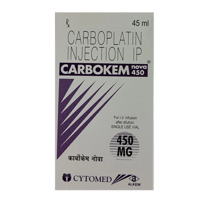 Carbokem Nova 450mg Injection is a medication used to treat cancer. It inhibits the proliferation and development of cancer cells by destroying their genetic material (DNA and RNA).